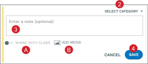 Students also have the ability to tag their teacher or other students when sending a reply to a note by using the "at" @ symbol within the note reply.