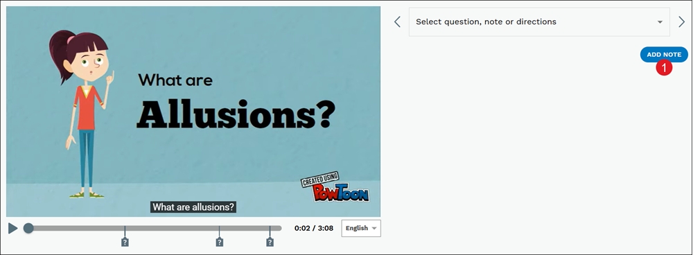1. As the video plays, click the Add Note button below the drop-down to the right of the video. The video will pause when the button is clicked.