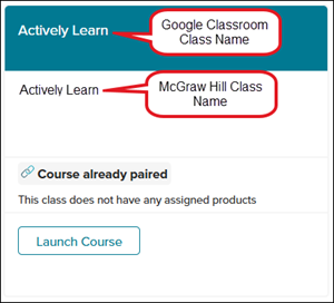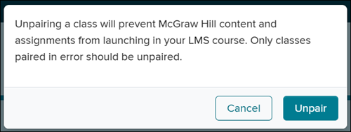 Note: McGraw Hill content and assignments will not launch from your Google Classroom class if you unpair the class.