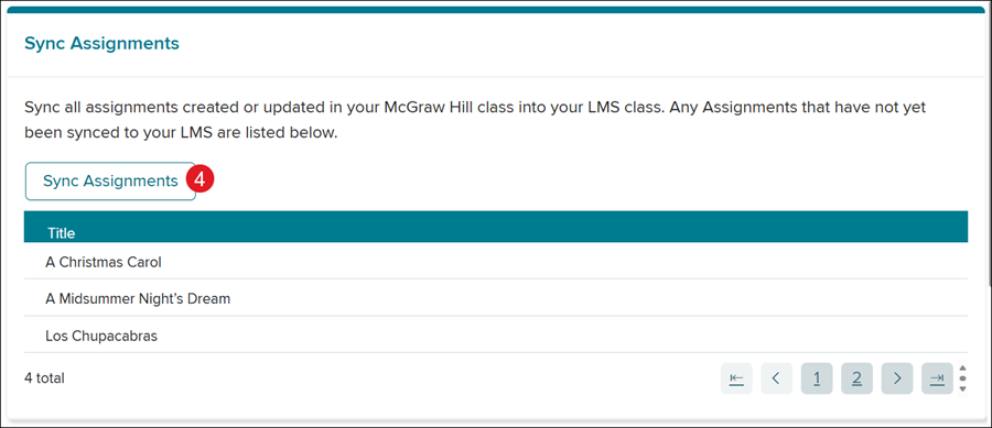 McGraw Hill will automatically check to see if there are any assignments that have not yet been synced to Google Classroom. These will be listed in the area below the Sync Assignments button.