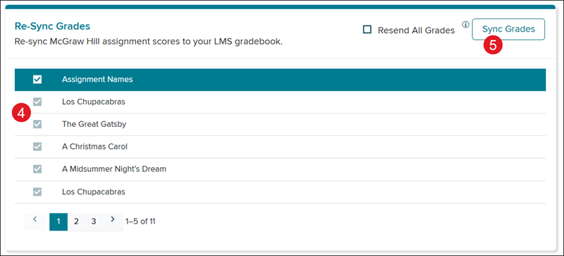 4. On the Re-Sync Grades tile, checkmark the assignment(s) that need to be resynced.