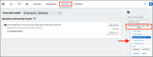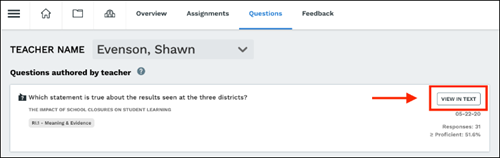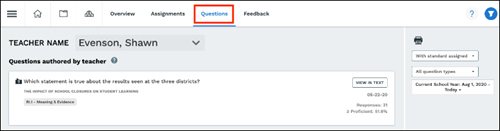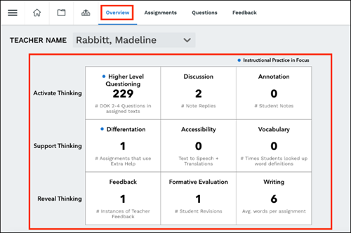 Coaching reports give administrators access to the assignments, information about the question types each teacher is assigning, and feedback teachers have given students.