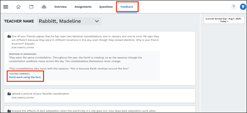 View feedback from teachers to students