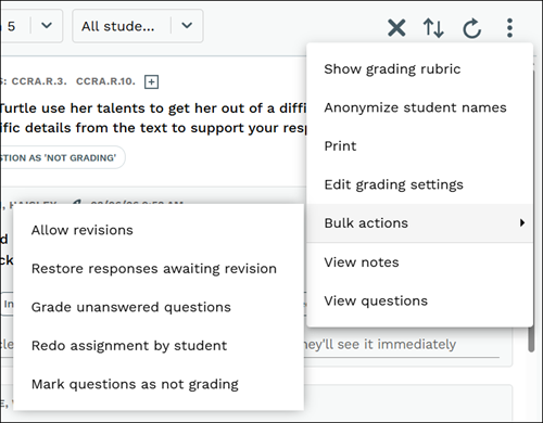 For information on the different Bulk actions available for grading, refer to the Actively Learn - Bulk Assignment Actions article.