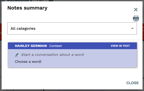 C. Click the Print button to download/save/print the student's project and the notes they added.