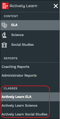 2. In the Classes section, select the class.