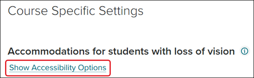 7. In the Course Specific Settings section, click the Show Accessibility Options link.