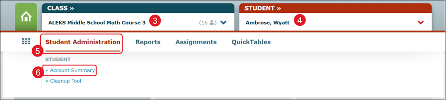 Make sure all visually impaired students have enrolled in the ALEKS class. Once enrolled, go to the Student Account Summary page for each student.