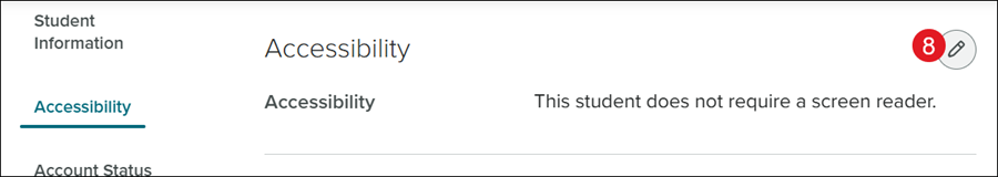 8. Checkmark the This is a student with loss of vision and requires a screen reader box.