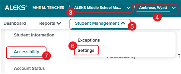 This article walks teachers through making adjustments to the Accommodations for students with loss of vision section within ALEKS.