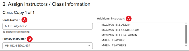 A. If you want to add co-teachers, select the teacher(s) from the Additional Instructors box.