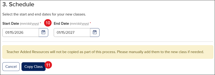 10. Select the Start and End Date for the class.