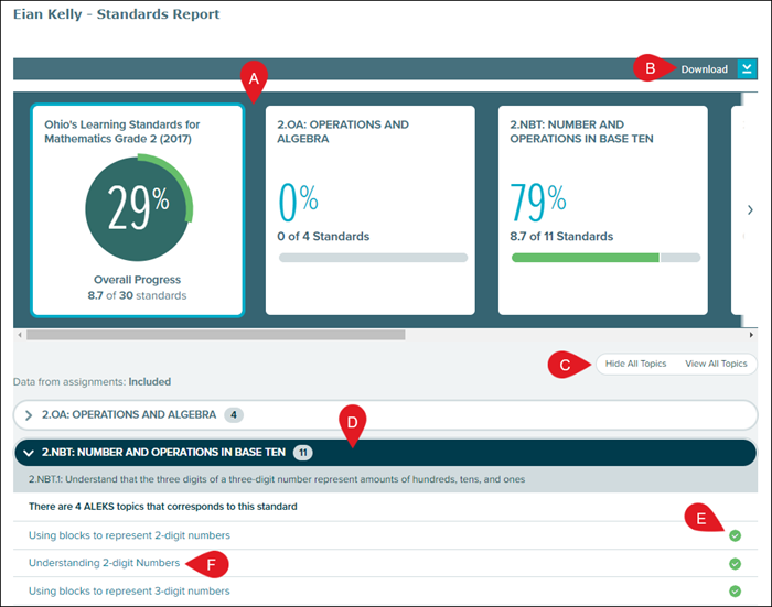 F. Click on the Standard or Topics link to narrow down the report to that specific standard and the topics that are linked to that standard.