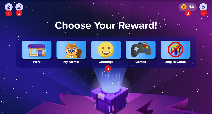 • Skip Rewards: Allows students to skip the topic rewards and continue to the next topic.