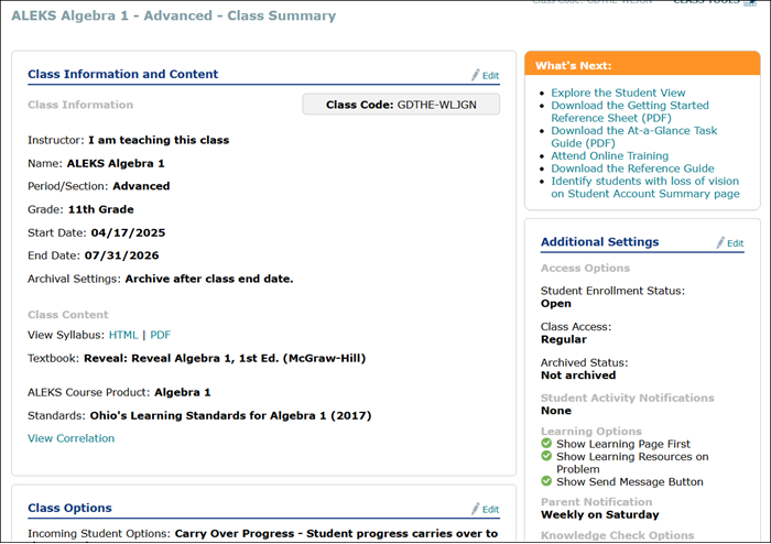 Teachers using ALEKS on Open Learning can create sub-classes using a district or school-level Master Template. If your district or school administrator has created a Master Template, you can follow these steps to add a sub-class using the new Master Template.