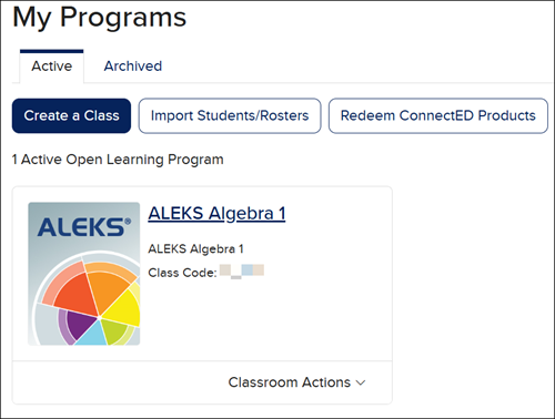 3. From My Programs, click the ALEKS icon or the class name to launch into your ALEKS program.