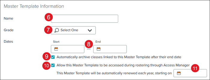 9. Check the box next to Automatically archive classes linked to this Master Template if you want the teacher's course to be archived the same date that is entered into the End date field.