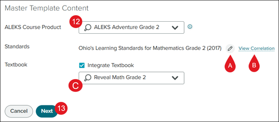 A district or school administrator can create Master Templates to set up multiple classes with the same ALEKS Course Product. This saves time when adding/editing assignments, setting up resources, etc. Any changes made to the Master Templates will also update all linked classes. We recommend making any necessary edits before teachers begin linking classes to the Master Template. This article will walk through how Administrators can create Master Templates at the district or school level for ALEKS on Open Learning.