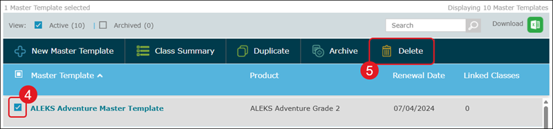 ALEKS - Delete a Master Template