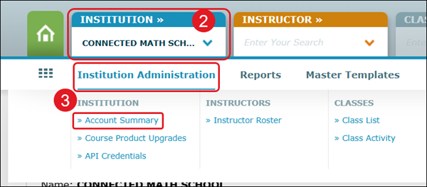 3. Hover over Institution Administration and select Account Summary from the menu.