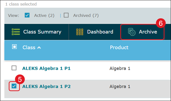 Archive an ALEKS class to preserve data while removing it from active courses.