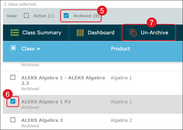 Classic ALEKS - Archive/Unarchive a Class