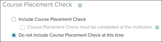 16. In the Course Placement Check section, click the radio button to Include or Do Not Include Course Placement Check. This option only shows for select ALEKS Course Product options.