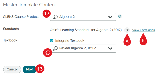 12. Select the ALEKS Course Product the template will be associated with.