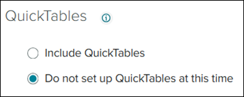 17. Select the radio button to Include QuickTables or Do not set up QuickTables at this time.