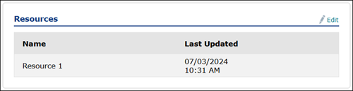 If any Resources have been attached to the template, they will be listed here with the Name of the resource and the date when it was last updated/attached.