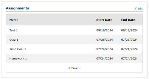 If any Assignments were created and attached to the template, they will be listed with the assignment Name and Start and End Date.