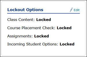 The Lockout Options show if certain sections can be edited by teachers or not.