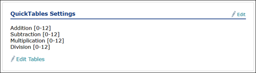 The QuickTables Settings section provides information on the selected QuickTables, if applicable.
