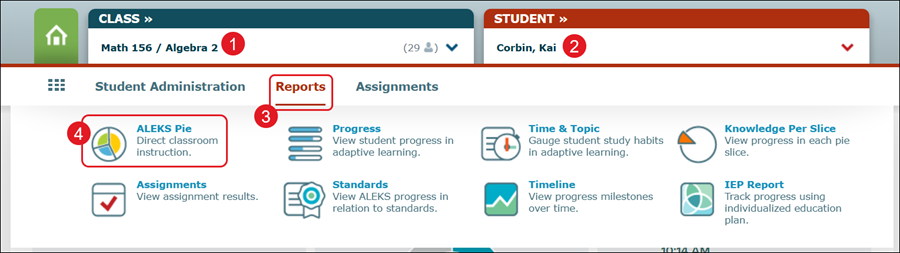 This article walks teachers through accessing and viewing Pie report in the classic ALEKS view.