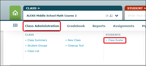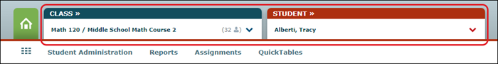 Another option is to select a class from the Class drop-down and then select a student from the Student drop-down.