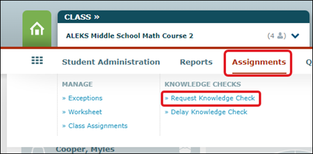 Learn how to request a Knowledge Check for an individual ALEKS student.