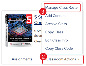 3. Click on Manage Class Roster from the menu.
