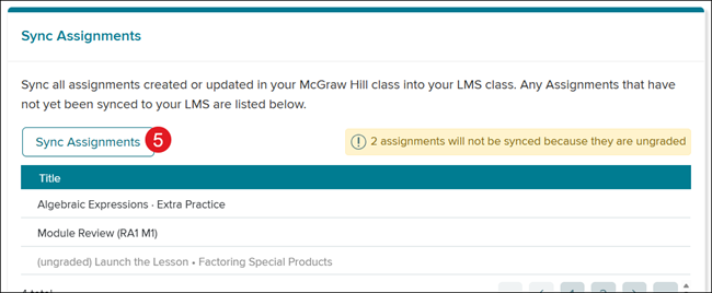 McGraw Hill will automatically check to see if there are any assignments that have not yet been completed synced to Google Classroom. These will be listed in the area below the Sync Assignments button.