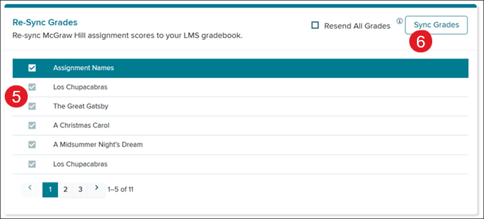 5. On the Re-Sync Grades tile, checkmark the assignment(s) that needs to be resynced.