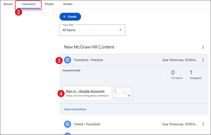 In addition to creating assignments, you can also create deep-links to McGraw Hill assets and resources within Google Classroom. This allows you to create links for users to launch resources in Google Classroom without necessarily making them into assignments.