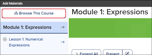 The last selected Chapter/Unit/Lesson will open by default. Click the Browse This Course button to navigate to a different location within the program.