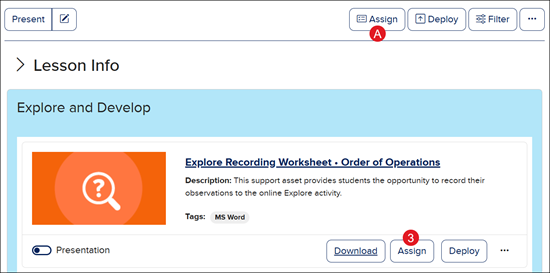 Click the Deploy (A) button at the top-right of the page to assign multiple resources at one time.