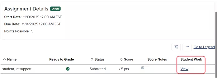 Note: Assignments can only be graded from within each section directly. Launching the Primary Section will only allow you to edit the assignment settings.