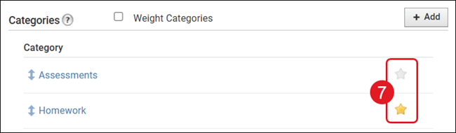 Note: Assignments will not show in the gradebook until they've been assigned to a category. If you have a starred category, that option will be used as the default category and assigned to the assignment automatically.