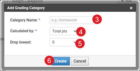 3. On the Add Grading Category pop-up, enter a Category Name.