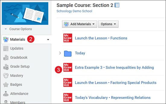 Note: Student View (Preview Course) will not function for viewing assignments from a student perspective. The Student View generates a fake student user in Schoology that enables you to view items from a student's perspective. Since this fake account does not exist within the McGraw Hill platform, any attempt to launch assignments will result in an error screen.