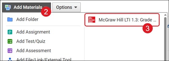 3. Click on McGraw Hill LTI 1.3: Grade and Assignment Integration from the menu.