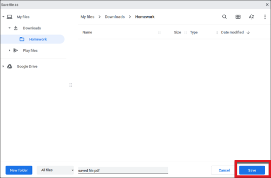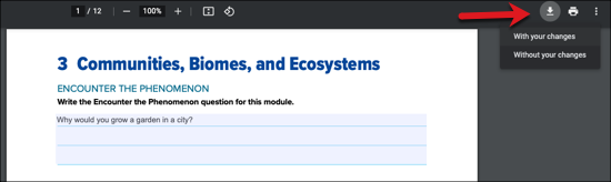 This article explains how students can complete and download PDF assignments using a Chromebook. If you make progress on an assignment and need to come back to it later, be sure to use these instructions to save your PDF assignment. When you re-open the assignment later, your previous work will be saved within the assignment.