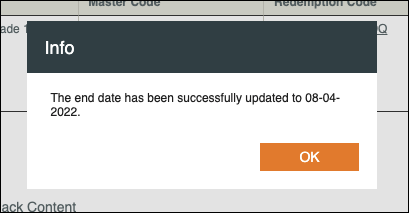 5. You'll see a message stating that the end date has been successfully updated. Click OK.