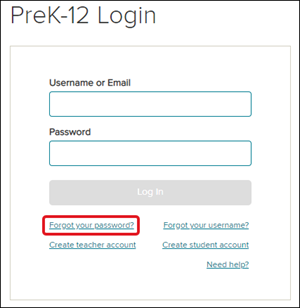 Additionally, an Organization Administrator can retrieve your username and reset your password if needed. If you are not sure who your Organization Administrator is, please contact our K-12 Technical Support team for further assistance.